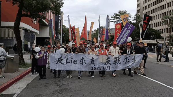 台湾民众上街头,戳破“抗中保台”谎言,批军购危害两岸和平 图:总台看台海