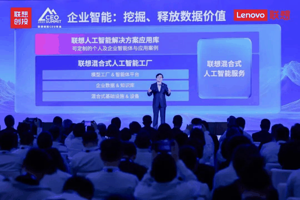 当前,我们正处在全球新一轮智能化变革浪潮的关键节点。面对这一轮人工智能浪潮,早在2023年联想就率先看准了“混合式人工智能”的趋势。我们认为,这个世界不仅需要公共智能,还需要个人智能和企业智能,满足用户在个性化、私域化方面的考量,以及在效率、响应速度、安全隐私保护和可持续发展等多方面的需求。这三种智能共存互补、彼此增强所形成的“混合式人工智能”,将成为AI普及普惠的必由之路。在去年的创投CEO峰会上,我同大家分享了对这个趋势的看法,以及联想在人工智能时代的愿景——沿着混合式人工智能的路径推动人工智能走下云端,走近每一个个人和每一家企业,最终让每个人都拥有一个个人智能双胞胎,每家企业也拥有一个企业智能双胞胎。