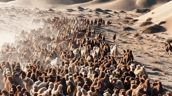 直击阿拉善驼群转场 解锁冬日限定震撼