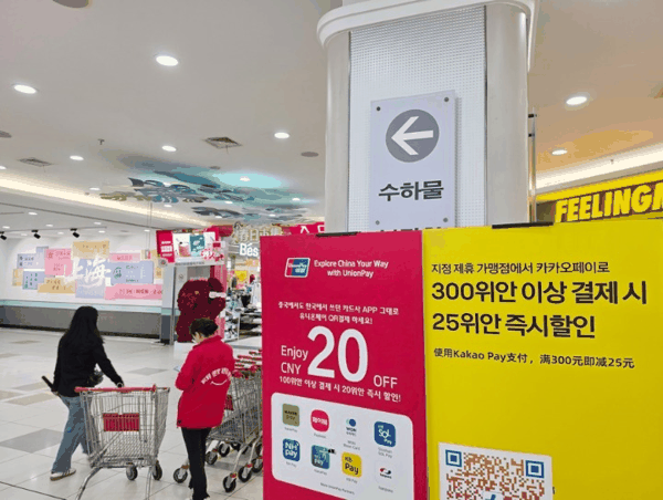 这种客流结构的变化促使商家做出调整。纪晨浩说,店门口的韩文指示牌是去年年末新放置的。从去年韩国旅游热开始,店铺便与Kakao Pay展开合作。这种针对特定客群的设置,让支付的便利性成为承接流量的关键一环。