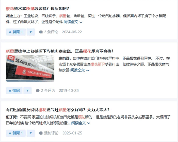 同时,长期存在的仿冒产品,已经在部分消费者心中形成混淆,即便正品樱花始终坚守产品品质和服务体系,也难以快速扭转消费者的负面认知。