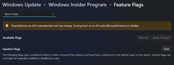 IT之家 4 月 6 日消息,Windows 11 的设置应用中将新增一个“功能标志(Feature Flags)”页面,用户可通过该页面手动启用或关闭系统中的新功能。在此之前,用户只能借助 ViVeTool 这类第三方工具,或是等待微软的受控功能部署(CFR)机制将新功能推送至自己的电脑。颇具讽刺意味的是,功能标志功能目前在 26300.8155 预览版中仍处于隐藏状态,尚未启用。