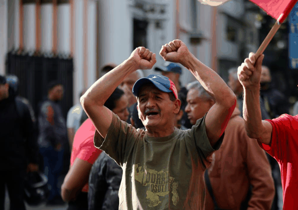 3日,民众在委内瑞拉首都加拉加斯的总统府附近抗议。