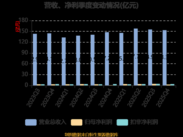 截至2025年,公司经营活动现金流净额为53.98亿元,同比增长17.3%;筹资活动现金流净额6.44亿元,同比增加15.15亿元;投资活动现金流净额-41.45亿元,上年同期为-19.88亿元。