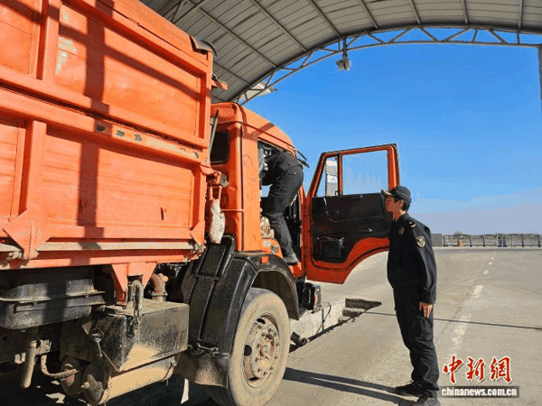 同江海关关员高效验放进境车辆。 同江市委宣传部供图