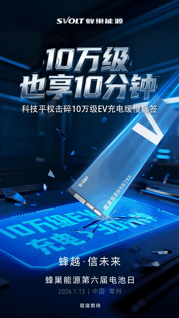 10万级车也享10分钟快充,蜂巢能源第六届电池日官宣1月13日举行