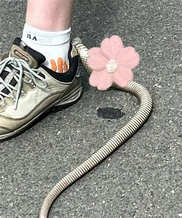 发现毒蛇卡鞋子上后,女子倒还算冷静,面对毒蛇一动不动站着。反观蛇,因为女子最初又跳又抖的反应表现得很慌乱,逃跑时慌不择路,身子意外钻进了女子运动鞋的鞋跟环里,卡住了。