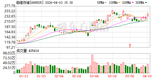 股价与市值同步大幅上涨。截至2026年4月10日收盘,佰维存储股价报241.51元/股,较2025年末累计涨幅超110%,总市值约1137.1亿元,站稳千亿市值梯队。