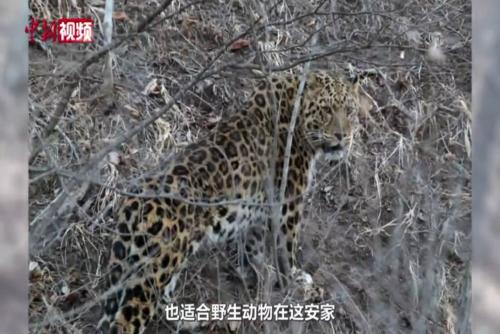 摄影师在G331公路偶遇东北豹 双方对视数秒