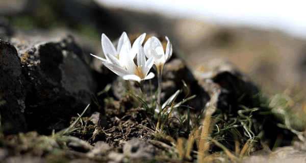 新疆察布查尔县白番红花提前半个月顶冰盛开