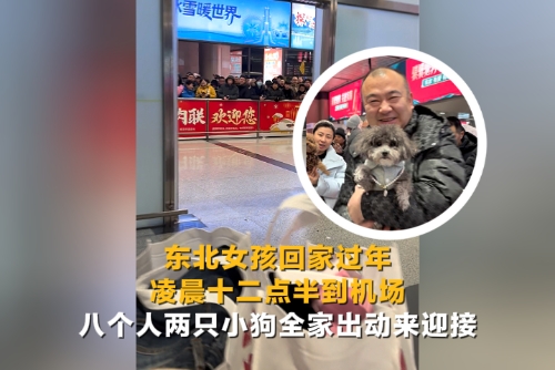 东北女孩回家过年 八个人两只小狗全家出动迎接