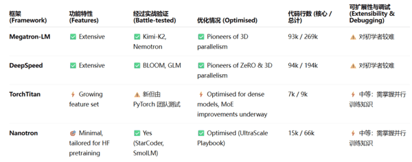 nanotron (作者自研):提供了完全的灵活性,但需要大量投入来开发和测试。