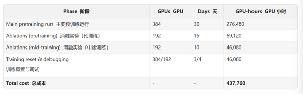 不过,这种价值的成本极其昂贵。以 SmolLM3 为例,消融和调试所消耗的 GPU 时间超过了主训练运行的一半。