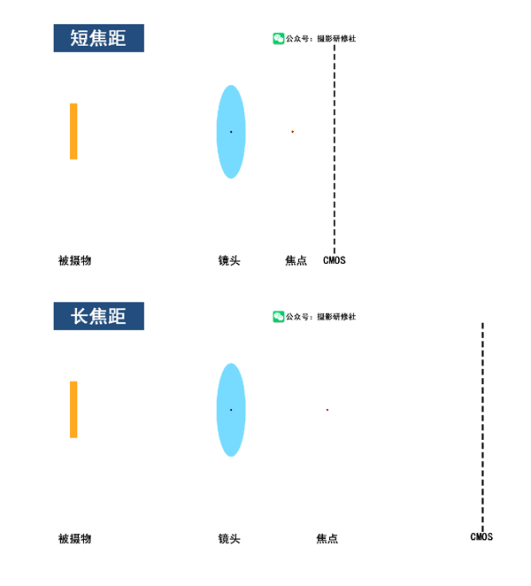 焦距决定了光线的投射面积。 根据光通量守恒的原则,孔径决定了进光量(透镜左),光线投射的总面积越大(透镜右),单位面积内的光线照度就会越低。