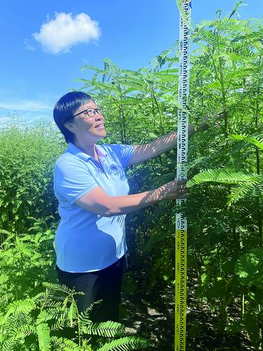 为让南方的田菁在北方“安家”,曹晓风带领团队历经6代杂交驯化培育“中科菁”系列新品系,配套研发“微生物固氮菌剂+除草剂”组合技术,一步步帮田菁适应新环境。“田菁种下去就有改土能力,再与土壤微生物协同,通过植物、土壤、微生物三者互作,就能实现以种适地、以地适种。”曹晓风说。