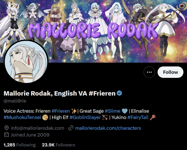 相信即使你不知道“芙莉莲”是谁,也能看出这张图的诸多好笑之处。网友当然也不会放过这样的乐子,没过几天,这张图就如病毒式的传播开来,甚至芙莉莲的英文配音演员Mallorie Rodak也将自己的账号设置为了这张“大作”。