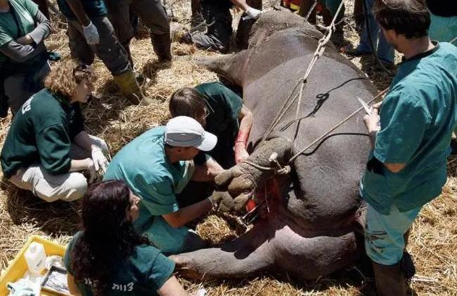 为河马做绝育手术的难度可以说是史诗级困难,经常是麻醉后很长时间,医生还在河马裆部摸索,以便确定其睾丸位置。