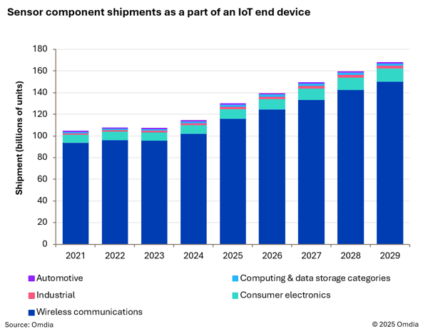 在汽车领域,市场增长将深度受益于电气化、网联化与数字化的协同推进。高级驾驶辅助系统(ADAS)的加速普及,预计将成为拉动传感器需求的关键力量,并构成2026年行业增长的核心引擎。无线通信方面,作为物联网终端的关键组成部分,该领域传感器组件占据总体出货量最大份额。随着5G手机渗透率的持续提升,设备出货量稳步增长,将进一步直接带动射频(RF)滤波器市场的扩张。然而,在消费电子领域,终端产品组合正经历显著调整:耳机、可穿戴设备及智能音箱等品类的出货量有所回落,导致整体收入预期承压。其中,市场对高集成度、高附加值的MEMS麦克风需求变化尤为突出,这也从侧面反映出对高性能、小型化传感器的结构性需求正在不断深化和演进。