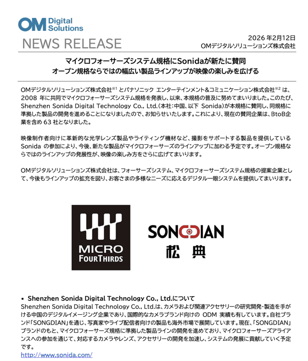 IT之家 2 月 12 日消息,奥林巴斯奥之心数字科技、松下娱乐与通信有限公司今天发布新闻稿, 宣布深圳索达数码科技有限公司(松典)加入 M43 卡口联盟 。