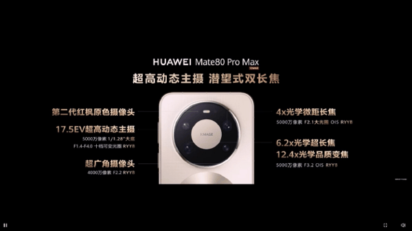 在焦段覆盖上, 华为Mate 80系列搭载潜望式双长焦摄像头,支持4倍与6.2倍独立双光学长焦,辅以超广角镜头,构建起覆盖12mm至135mm的全焦段拍摄体系。这一能力使手机在镜头语言表达上足以比肩专业广播级摄像机,为导播团队提供了从广角全景到长焦特写的丰富画面选择,极大地拓展了竖屏直播的创作边界。