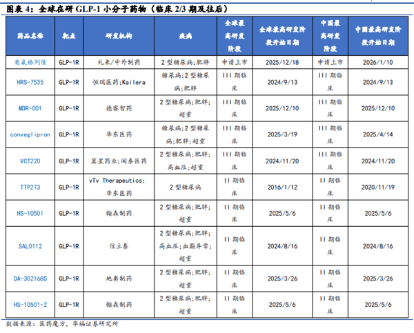 华源证券表示,Orforglipron领跑全球小分子GLP-1RA赛道,国内企业快速跟进,形成差异化竞争梯队。其中, 恒瑞医药 、 华东医药 等已进入III期临床, 翰森制药 、 信立泰 、硕迪生物、歌礼制药等已进入II期临床。截至目前,国产口服小分子GLP-1RA多个项目实现出海授权MNC:诚益生物授权予 阿斯利康 、 复星医药 授权予 辉瑞 、 翰森制药 授权予 默沙东 。建议重点关注具备口服小分子GLP-1RA布局及出海潜力的本土药企,如歌礼制药、 信达生物 ,以及产业链上游的 药明康德 、 海特生物 等。