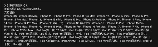 官方提醒, 目前游戏推荐使用iPhone 12 Pro或iPad Pro(第四代)11英寸及以上机型,推荐系统iOS 15.6或更高版本。