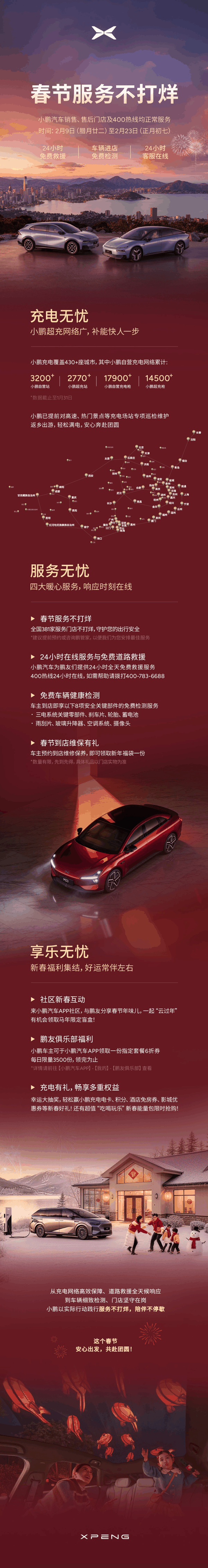 小鹏汽车官宣“春节服务不打烊”,支持24小时免费救援、车辆进店免费检测等