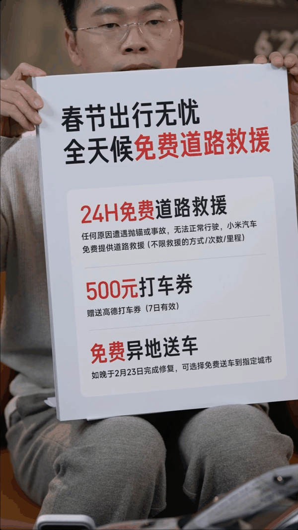目前,鸿蒙智行、蔚来、小米汽车、深蓝汽车等多家品牌 / 车企已官宣春节不打烊,提供 7×24 小时救援服务、进店免费检测等。