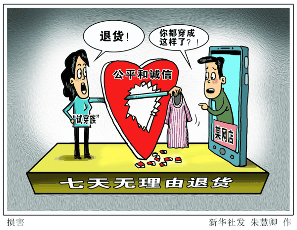 对喜欢购物的“剁手党”们来说,“七天无理由退货”既是一颗定心丸,也是一粒后悔药。商品不合格、衣服穿起来不合身,都可以轻松退换,一时的冲动消费也能得到及时补救。