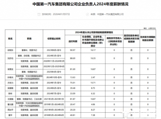 1月14日,官方披露了2024年度中央企业负责人的薪酬,引发人们密切关注。运营商财经网注意到,一汽集团董事长邱现东获薪90.97万元,竟不及国内大多民营车企高管的薪酬水平。