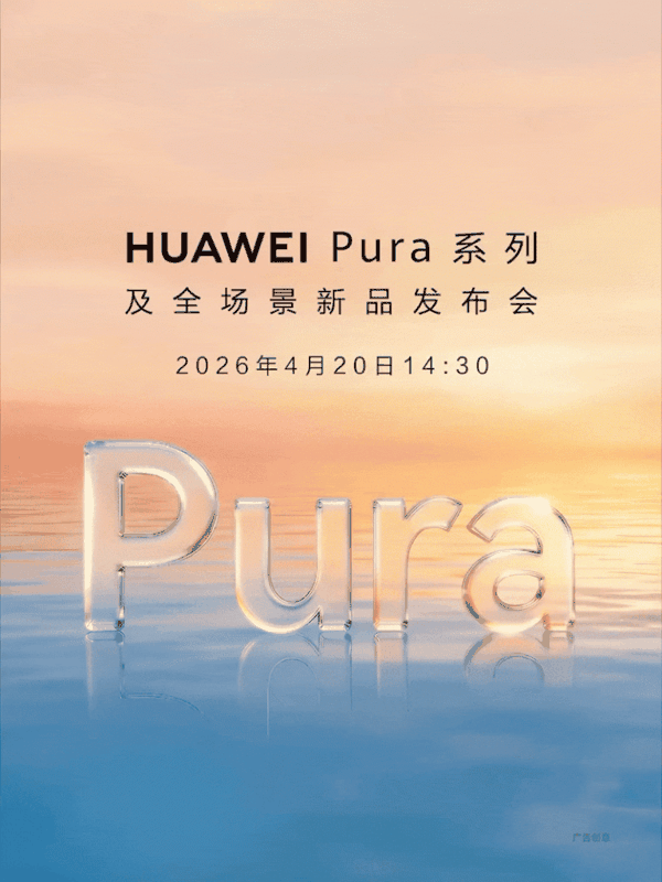 就在今天,华为官方宣布 Pura 系列及全场景发布会定档 4 月 20 日 14:30。