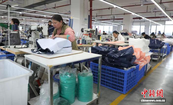 工人正在永州高胜皮具有限公司生产车间赶订单。刘文斌 摄