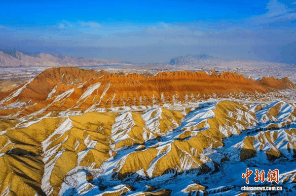 张掖的“雪浴七彩丹霞”风光。张掖市政府 供图