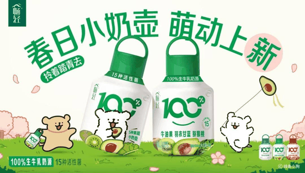 产品的创新背后是对“情绪价值和消费场景”需求的深度洞察。据介绍,当下消费者愈发关注自我情绪,更愿意为能传递积极感受的产品买单,而酸奶作为“健康零食”,本身就提供了治愈、轻松的情绪价值。同时,酸奶的消费场景日益多元化,户外场景占比持续提升,畅轻绿色小奶壶选择在春日上新,正好精准切入了消费者春日踏青的场景,并唤起春天带来的美好情绪。