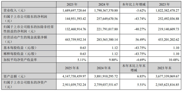 2025 年,公司持续加大研发投入,全年研发费用1.69 亿元,占营业收入比例 9.19%。研发人员达281 人,占员工总数 81.69%。