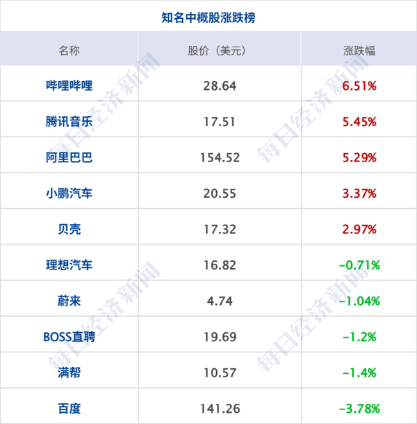 美股三大指数收盘涨跌不一,道指涨0.55%,标普500指数涨0.01%,纳指跌0.44%,标普500能源指数收涨3.2%,创4月份以来最大单日涨幅 ;大型科技股多数下跌, 英特尔 跌超3%, 英伟达 跌逾2%, 微软 跌超1%, 奈飞 、 苹果 小幅下跌;谷歌、 亚马逊 、 特斯拉 涨超1%;美股存储概念普跌, 希捷科技 跌超7%, 西部数据 跌超6%, 美光科技 跌超3%。 中概股多数上涨, 纳斯达克 中国金龙指数涨1.09% , 万国数据 涨超8%, 哔哩哔哩 涨逾6%, 腾讯音乐 、 阿里巴巴 涨超5%, 金山云 、 小鹏汽车 等涨超3%, 京东 、 唯品会 等涨超2%, 中通快递 、 富途控股 等涨超1%; 百度 、 霸王茶姬 跌超3%, 蔚来 等跌超1%。