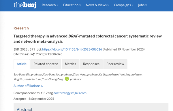 我国专家BMJ发文:“双靶双化”为难治性肠癌人群首选
