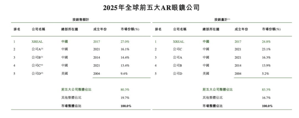过去一年,智能眼镜大概是AI硬件里最热的赛道,没有之一。 Meta去年卖出了超过700万副Ray-Ban Meta,是2023年和2024年销量总和的三倍。 但如果把视角切到另一条路线,画面就完全不一样了。 同样是“智能眼镜”,AR眼镜的增长却显得异常平静。 昨天,XREAL披露了港股招股书。 熟悉智能眼镜的朋友肯定不陌生,无论按收入还是销量,它都是全球AR眼镜行业的绝对第一。2025年按收入计算,市场份额达到27.0%,甚至远高于Meta。 过去三年,公司AR眼镜销量分别为13.7万台、12.5万台和13.3万台,基本维持在13万台左右,几乎没有增长。 收入倒是在提升,从3.9亿增长到5.16亿,但更多来自于单价更高的新产品,而不是销量扩张。 这就形成了一个很有意思的反差:一边是AI眼镜快速放量,一边是AR眼镜龙头原地踏步。 这也引出了一个更关键的问题:为什么智能眼镜的风,吹到了AI眼镜,却没有吹到AR眼镜? 今天,我们就借着XREAL的招股书,来聊聊这门生意。 拉动增长,靠新品 过去三年,XREAL收入分别为3.9亿、3.94亿和5.16亿。 从增速来看,算不上很快。 拆分收入结构看,公司绝大部分收入来自AR眼镜和配件,其中AR眼镜销售分别为3.03亿、3.08亿和4.03亿,基本就是整个业务的核心。 从招股书看,XREAL的收入增长很大程度上依赖于新品推动。 目前,XREAL AR眼镜的产品线主要分为三类:One系列、Air系列以及Light-Ultra-Aura产品线。 其中,Air系列是XREAL的入门级产品,2025年平均售价为1656元; One 系列可以理解为是Air系列的升级版,强化了显示能力和交互体验,适合那些对画质、沉浸感和整体体验有更高要求的用户,2025年平均售价3196元; 而Light / Ultra / Aura 这条线比较特殊,更像是公司向下一代空间计算的探索产品,具备环境感知能力,也就是不仅能显示内容,还能感知和映射用户周围的物理环境。 2022年8月和2023年9月,公司分别推出了Air和Air 2产品。于是,在2023和2024年,Air系列成为支撑销量的绝对主力,分别卖出13.4万台和10.4万台。 到了在2024年年底和2025年7月,公司又分别推出了One和One Pro。在2025年,One系列取代Air系列成为公司收入的“扛把子”。 2025年,One系列卖出11.1万台,较上一年增长了7倍。 尽管三条线看起来分工明确,但由于市场需求有限,不同定位的产品仍然会彼此挤压。 最典型的例子就是Air和One。 2025年,当One系列卖出11.1万台时,同期Air系列的销量被压缩到了1.74万台,下降超过80%。 更有意思的是,价格变化。 2025年,Air系列平均售价从上一年的2325元下降到1656元,降幅超过25%。公司给出的解释是,新品推出后,旧产品以折扣清库存。 从总量来看,AR眼镜的销量在过去三年并没有发生明显变化。2023-2025年,公司AR眼镜的销量分别为13.7万台、12.5万台和13.3台。 这背后其实反映了XREAL一个比较致命的问题: 增长高度依赖新品驱动,但在总量尚未扩大的情况下,这种增长更接近于原有需求盘子的结构性迁移,而非新增需求的释放。 问题也随之而来,盘子没有做大,意味着很难赚钱。 过去三年,公司经调整净亏损分别为4.37亿、3.75亿和2.5亿,虽然亏损在收窄,但还是亏了不少。 尽管高客单价的One系列占比提升,带动公司毛利率从18.8%提升至35.2%,但在整体销量没有明显增长的情况下,研发费用和营销费用很难被摊薄。 也就是说,仅靠产品升级带来的毛利改善,并不足以支撑公司在短期内实现盈利。 被困住的AR眼镜,和AI眼镜的狂飙 XREAL的困境,其实不完全是公司本身的问题,更大程度上,是AR眼镜这个赛道带来的。 一个很容易被忽略的事实: 如果只看AR眼镜,XREAL已经是全球AR眼镜行业的绝对老大。 无论按收入还是销量算,它都是全球AR眼镜行业的绝对第一。2025年按收入计算,市场份额达到27.0%。