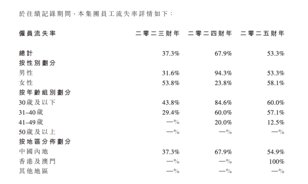 从员工流失率来看,2023年至2025年,其雇员流失率分别为37.3%、67.9%以及53.3%。
