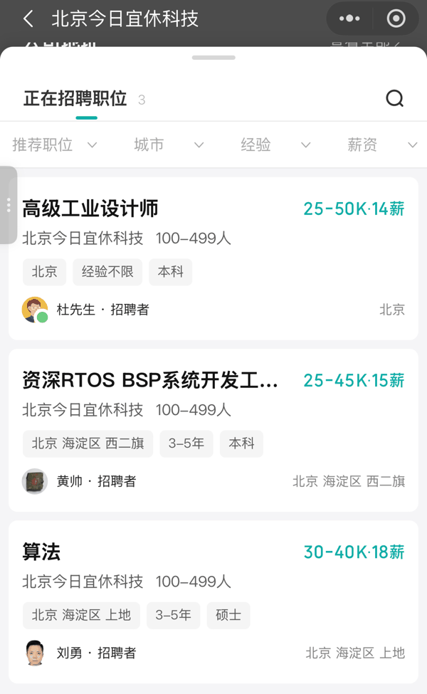 该公司主要研发睡眠健康相关产品。界面新闻注意到,目前这家公司在BOSS直聘上开放了三个招聘职位,分别是高级工业设计师、资深RTOS BSP系统开发工程师/专家以及算法专家。