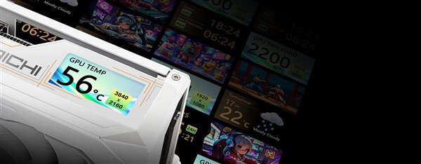 它其实就是此前太极标准版的白色版本,但不是简单白化,而是 在顶部增加了一块LCD屏幕,号称信息站,显示显卡状态参数,或者自定义图片、动画,甚至是时间日期、天气预报。