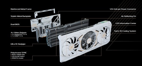 核心规格没变,还是三风扇加八热管,核心游戏频率2570MHz、 加速频率3100MHz ,超频幅度分别为7.1%、4.4%,一个HDMI 2.1b和三个DP 2.1接口。