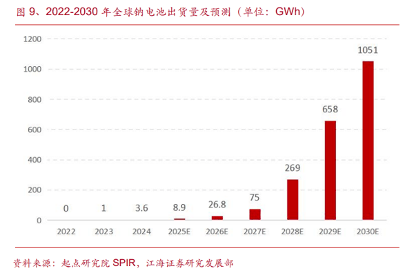 起点研究院数据显示,2025年全球钠离子电池出货量达9GWh,同比增长150%,预计2026年全球出货量将达26.8GWh,同比增长198%。而到2030年,全球储能钠电池市场规模将达580GWh,同期 汽车 使用钠电池的市场规模将突破410GWh。