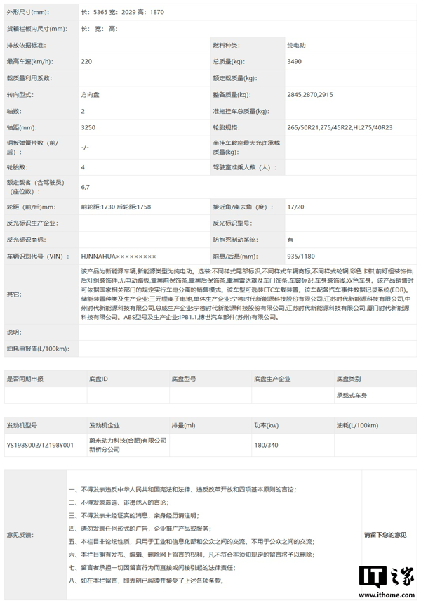 蔚来ES 9全尺寸SUV完成申报:车长超5.3米、前后电机功率180 kW+340 kW,今年二季度发布