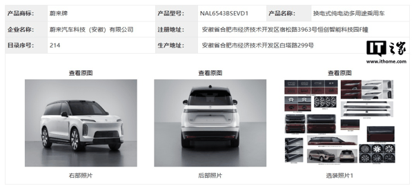 IT之家 1 月 8 日消息,在工信部今日发布的《道路机动车辆生产企业及产品公告》(第 403 批)的车辆新产品公示清单中,IT之家发现了蔚来 ES9 的身影。
