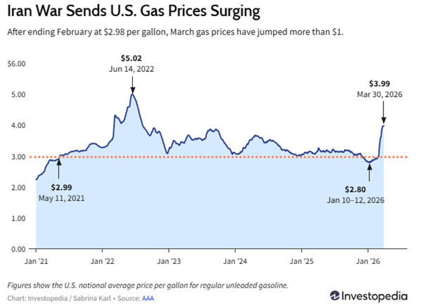 据美国汽车协会(AAA)的数据显示,自3月初以来,全美平均汽油零售价格已经上涨了1美元多,当时全美平均价格为2.98美元。