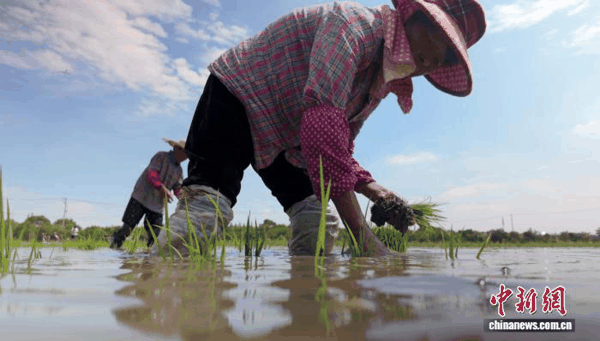 水稻试验田仍在进行人工插秧。 中新网 记者 张亨伟摄