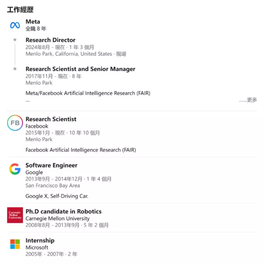 Junde)在X上写道:“他无疑是世界上最优秀的AI科学家之一,Meta让他走是巨大的损失。” 田渝栋本科毕业于上海交通大学,后获美国卡内基梅隆大学博士学位,曾发表多篇强化学习与大模型领域的重要论文。他同时也是一位科幻作家,去年出版了首部长篇小说,其年度AI技术总结信件在业内广为流传。田在Meta工作已超过十年。 除田渝栋外,其他受影响的中国研究人员还包括年轻的生成式AI科学家杨先俊(Yang