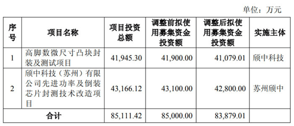 根据公司披露的募投项目规划,本次借款对应的苏州颀中 “先进功率及倒装芯片封测技术改造项目”,总投资额为 4.316612 亿元,调整前拟使用募集资金 4.31 亿元,调整后拟投入金额确定为 4.28 亿元,与本次借款额度一致。此外,公司另一募投项目 “高脚数微尺寸凸块封装及测试项目” 由颀中科技自行实施,项目总投资 4.194530 亿元,调整后拟使用募集资金 4.107901 亿元。两项目调整后拟使用募集资金总额为 8.387901 亿元,与实际募集资金净额相匹配。