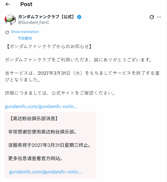 高达宣布粉丝俱乐部停止运营!时代落幕或新开始?